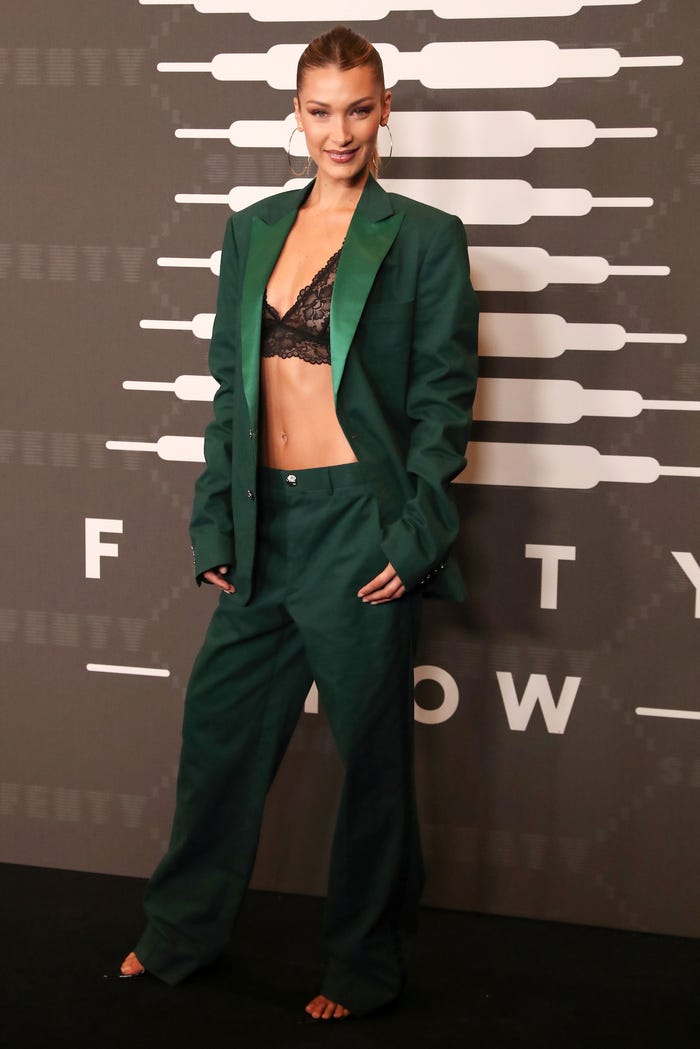 Quần cạp trễ và áo crop top là mặt hàng chủ lực của thập kỷ trước. The Cut dự đoán 2 item này sẽ trở lại vào năm 2018. Quả thực áo crop top đã bùng nổ mạnh mẽ, kéo theo đó là nhu cầu về các mẫu quần cạp cao. Quần cạp trễ chỉ tồn tại ẩn hiện trong hậu trường. Nhưng với Bella, trong 2 năm liên tiếp, cô liên tục mặc quần cạp trễ trong sự kiện và cả trong street style. Đặc biệt, bộ suit kèm bra của cô tại show Savage x Fenty vào tháng 9 năm 2019 đã gây được sự chú ý lớn.