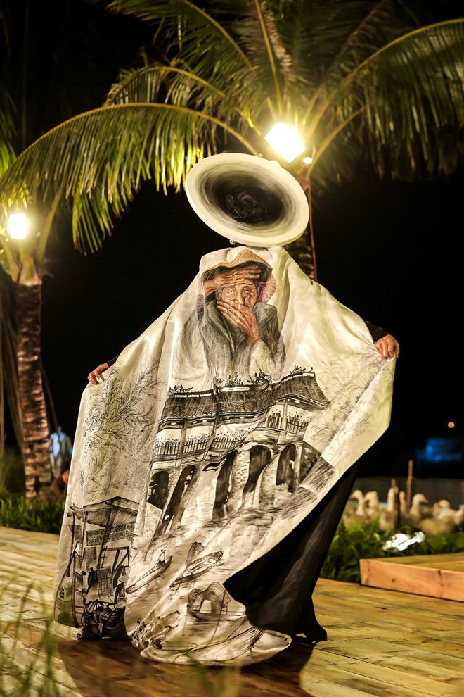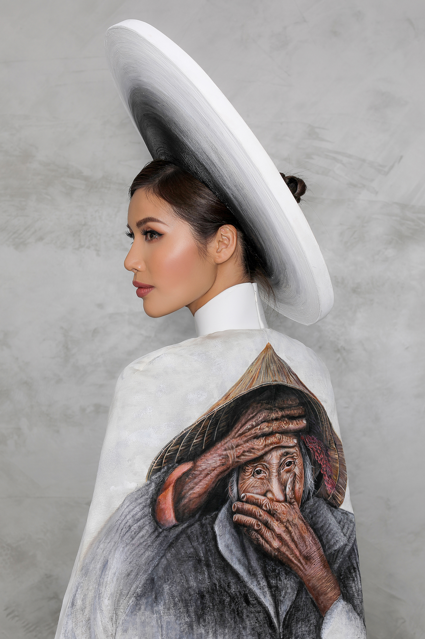 Đó là thiết kế áo dài với ý tưởng từ phố cổ cùng hình ảnh “Cụ bà đẹp nhất thế giới” Bùi Thị Xong - người chèo đò ở Hội An.