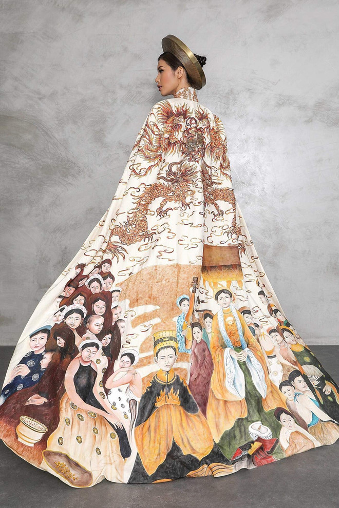 Thế nhưng, đây lại là sáng tạo từng được Trương Thị May diện vào năm 2017. Đảm nhận vị trí vedette, á hậu còn khiến công chúng thích thú với màn “hóa trang” thành cụ Hai Xong của mình.
