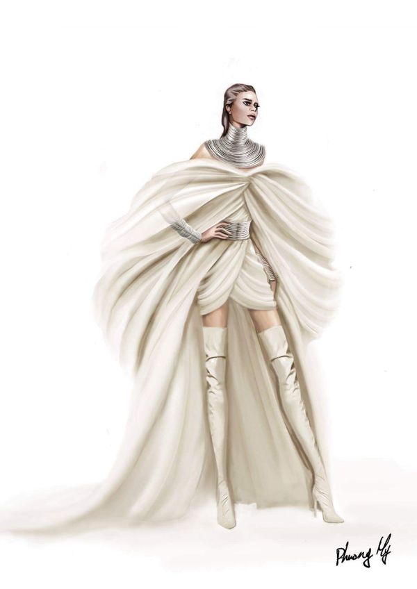 Nguyên bản thiết kế của Phương My, khi trình diễn cô đã không dùng boots như trong sketch.
