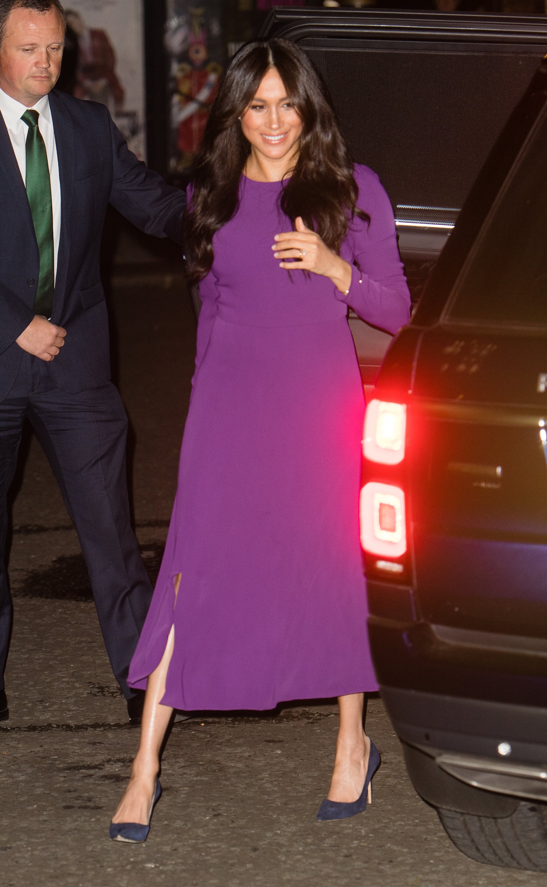 Thực ra, Meghan đã mặc chiếc váy này trong thời gian bầu bí. Lúc đó cô kết hợp váy tím với áo khoác đỏ trong chuyến thăm Birkenhead. Các fan của gia đình hoàng từ lâu đã biết nữ công tước rất thích màu sắc rực rỡ.