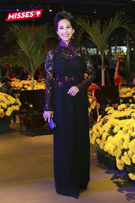 Trong buổi ra mắt phim “Mẹ chồng” vừa qua, Thanh Hằng khiến người hâm mộ thất vọng khi diện một chiếc váy dạ hội gam màu đen nặng nề. Các chi tiết hoa, tay phồng bị cho là lỗi thời, sến súa.