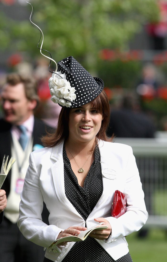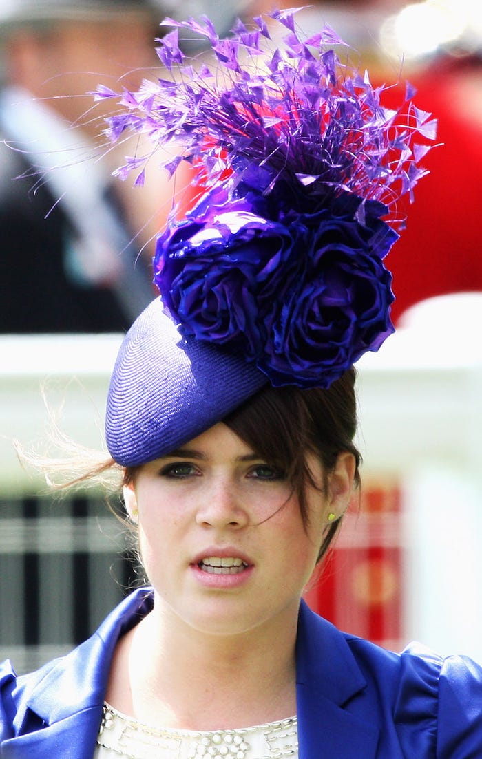 Trong khi nữ hoàng Elizabeth và công nương Kate luôn chọn những kiểu mũ thiết kế nhỏ gọn, thanh lịch, thì công chúa Eugenie lại ưa thích những mẫu khổng lồ đầy kịch tính. Không ít lần công chúa đã nhận về nhiều chỉ trích vì gu thời trang lấn lướt nhân vật chính của sự kiện.