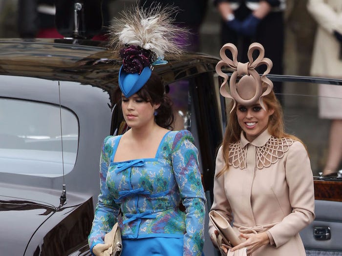 Công chúa Eugenie và công chúa Beatrice bị chỉ trích vì đội mũ quá nổi bật trong đám cưới của hoàng tử William và Kate Middleton vào tháng 4 năm 2011.