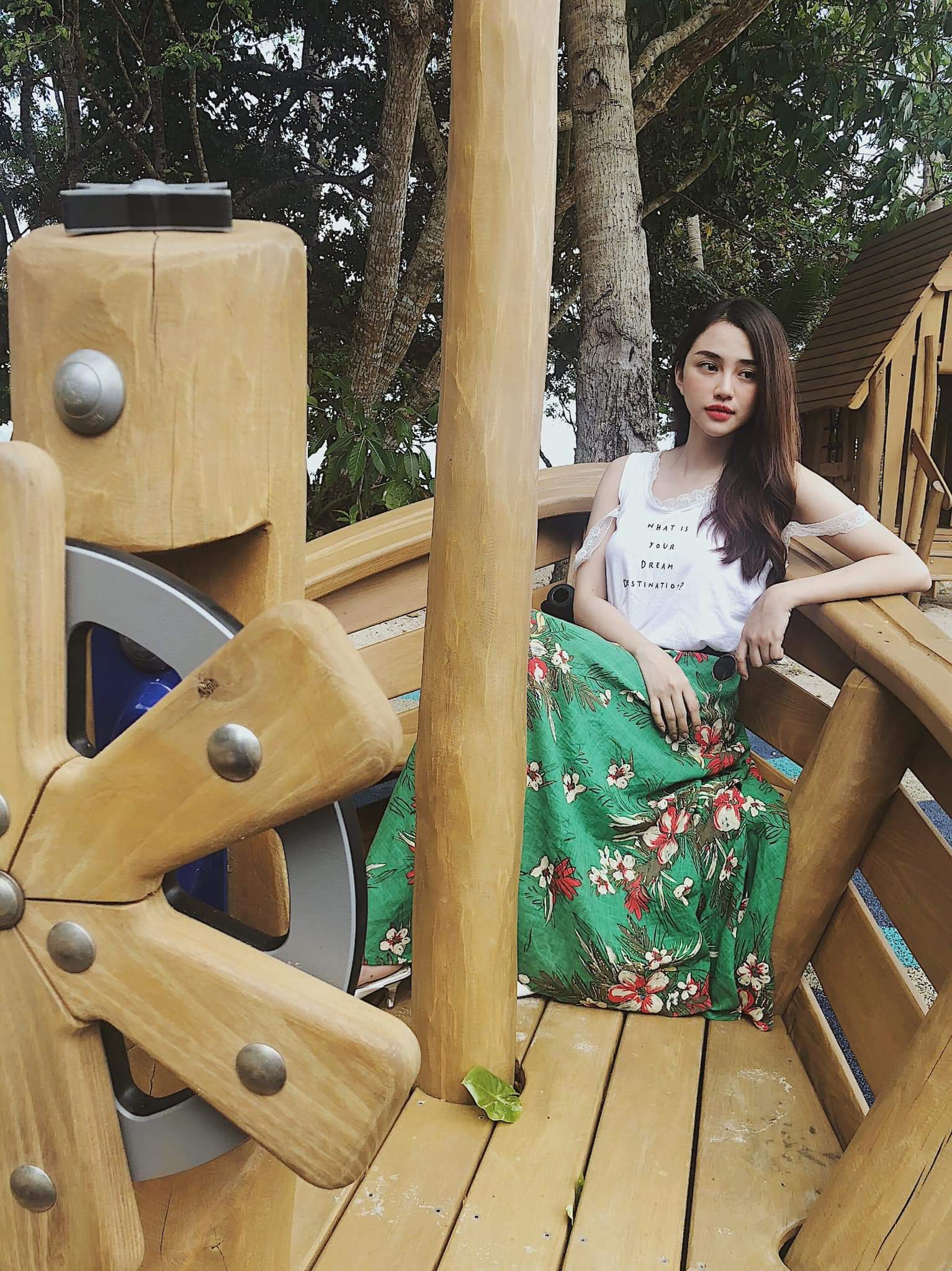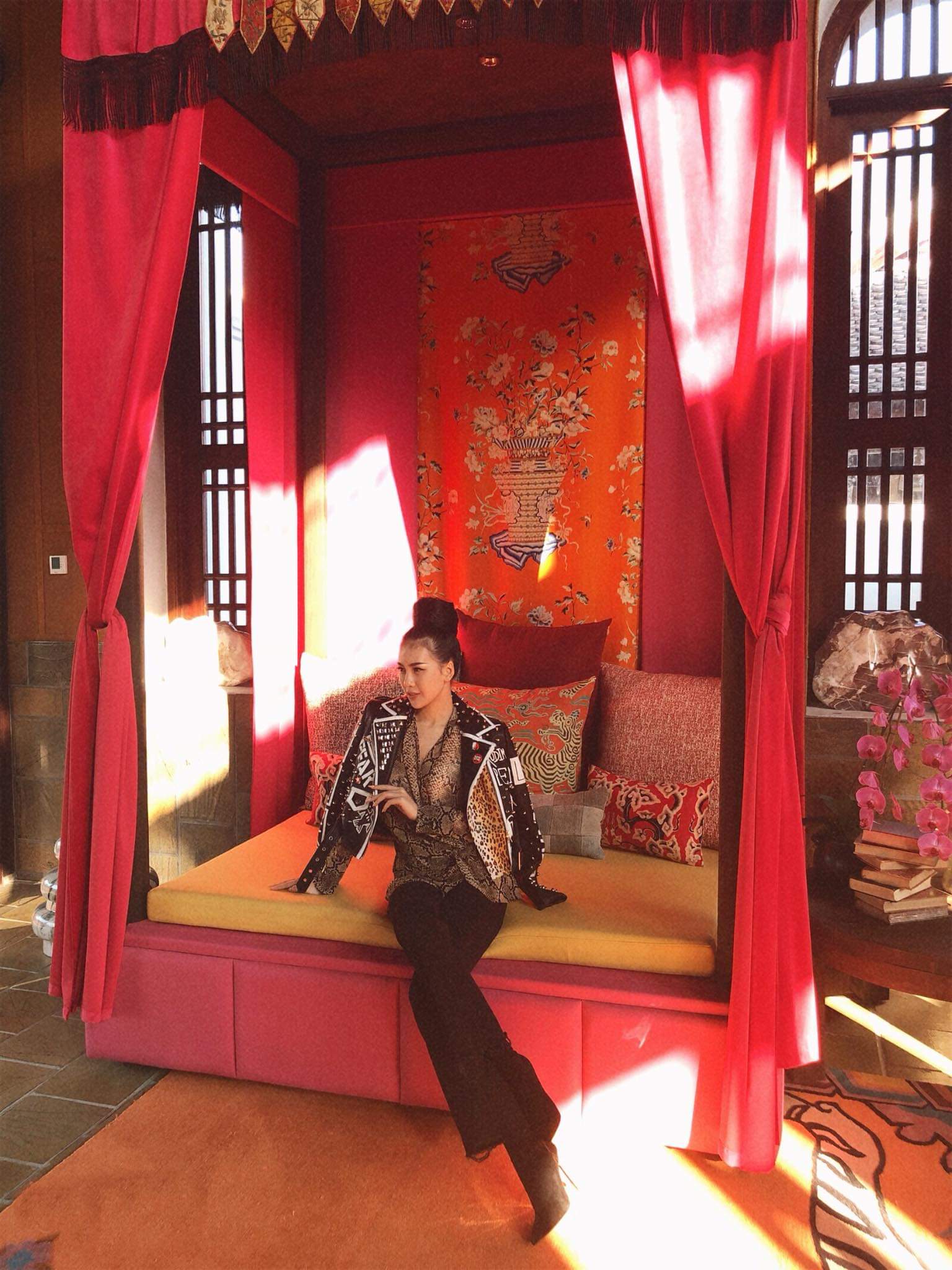 Giải Vàng Siêu mẫu - Quỳnh Hoa khoe dáng trong bộ cánh mang âm hưởng Châu Á. Cô nàng cũng lựa chọn background chụp ảnh chẳng thể phù hợp hơn.