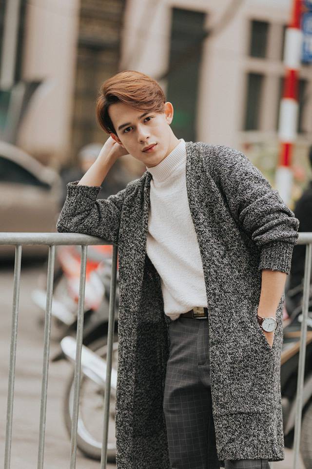 Áo len cổ cao, cardigan dáng dài đem lại nét trẻ trung, hiện đại cho chàng trai.