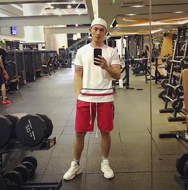 Anh Vũ hay chọn những thiết kế đơn giản, như áo ba lỗ, quần short khi tập gym.