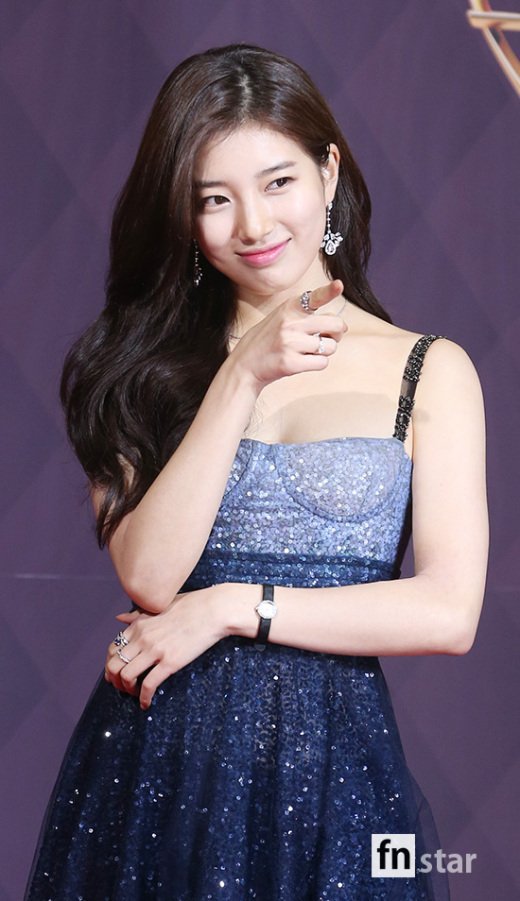 Suzy khoe vai trần trắng nõn nà cùng trang sức pha lê. Mặc dù chiếc váy rất sang trọng, khi Suzy mặc lên người trông mộc mạc đến lạ.