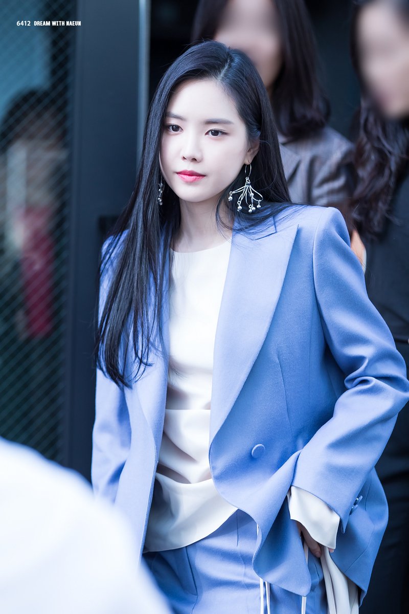Nếu là người khác, chắc chắn outfit này sẽ bị Knet ném gạch đủ để xây nhà. Thế nhưng vẻ đẹp long lanh của Naeun đã cứu vớt cho thảm họa thời trang này. Mái tóc xõa dài cùng gương mặt trang điểm tự nhiên, cô nàng hoàn toàn ăn điểm trong mắt công chúng.