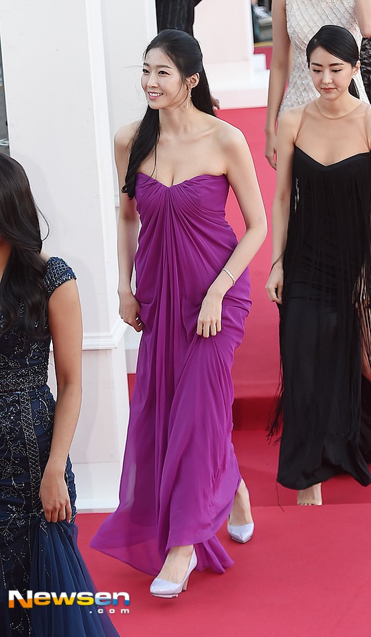 Chiếc váy tím nhăn nhúm cùng kiểu tóc ngát hương đồng nội của Hoa Hậu Kim Soo Min khiến fan dễ tính nhất cũng phải lắc đầu ngán ngẩm. Ngoại hình nhạt nhòa của cô còn không bằng chị em Á Hậu đi sau hộ tống.