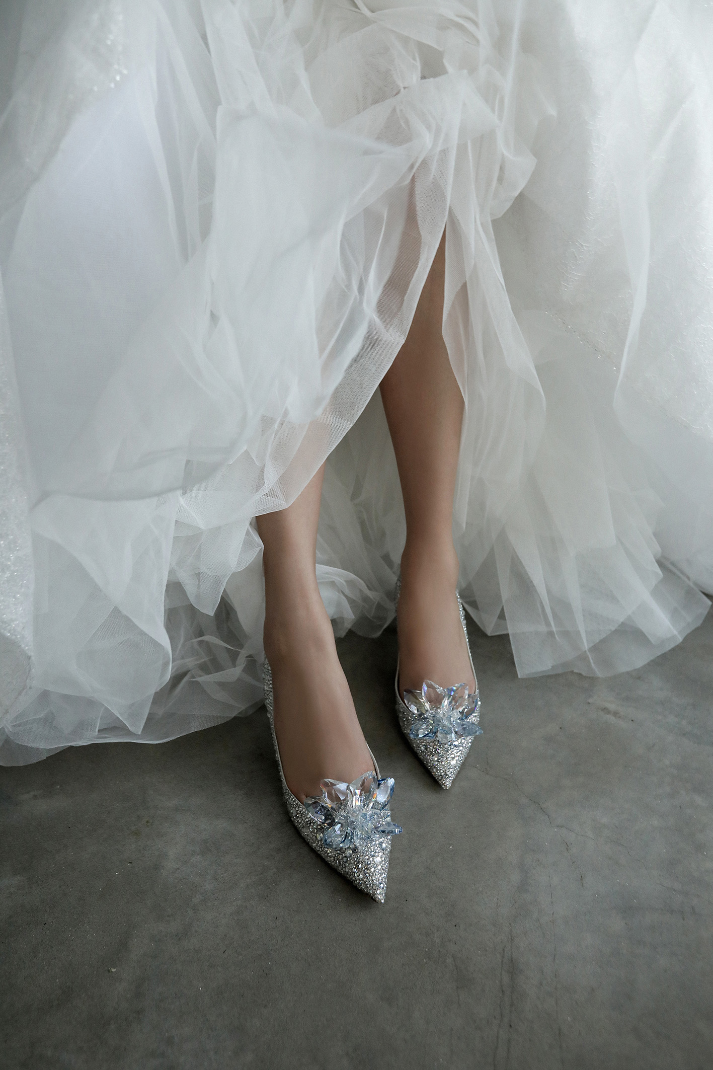 Thiết kế lấy cảm hứng từ đôi giày pha lê của nàng Lọ Lem, quả là món đồ lộng lẫy, phù hợp với bất kì cô dâu nào trong ngày cưới.