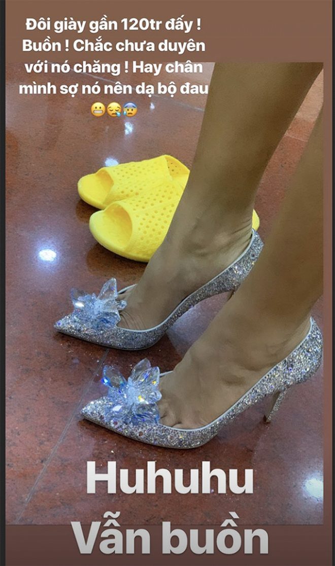 Điều đáng nói là trước đây người đẹp cũng từng mang thiết kế này một lần, nhưng không được lâu bởi bàn chân đang đau nhức, sưng tấy.