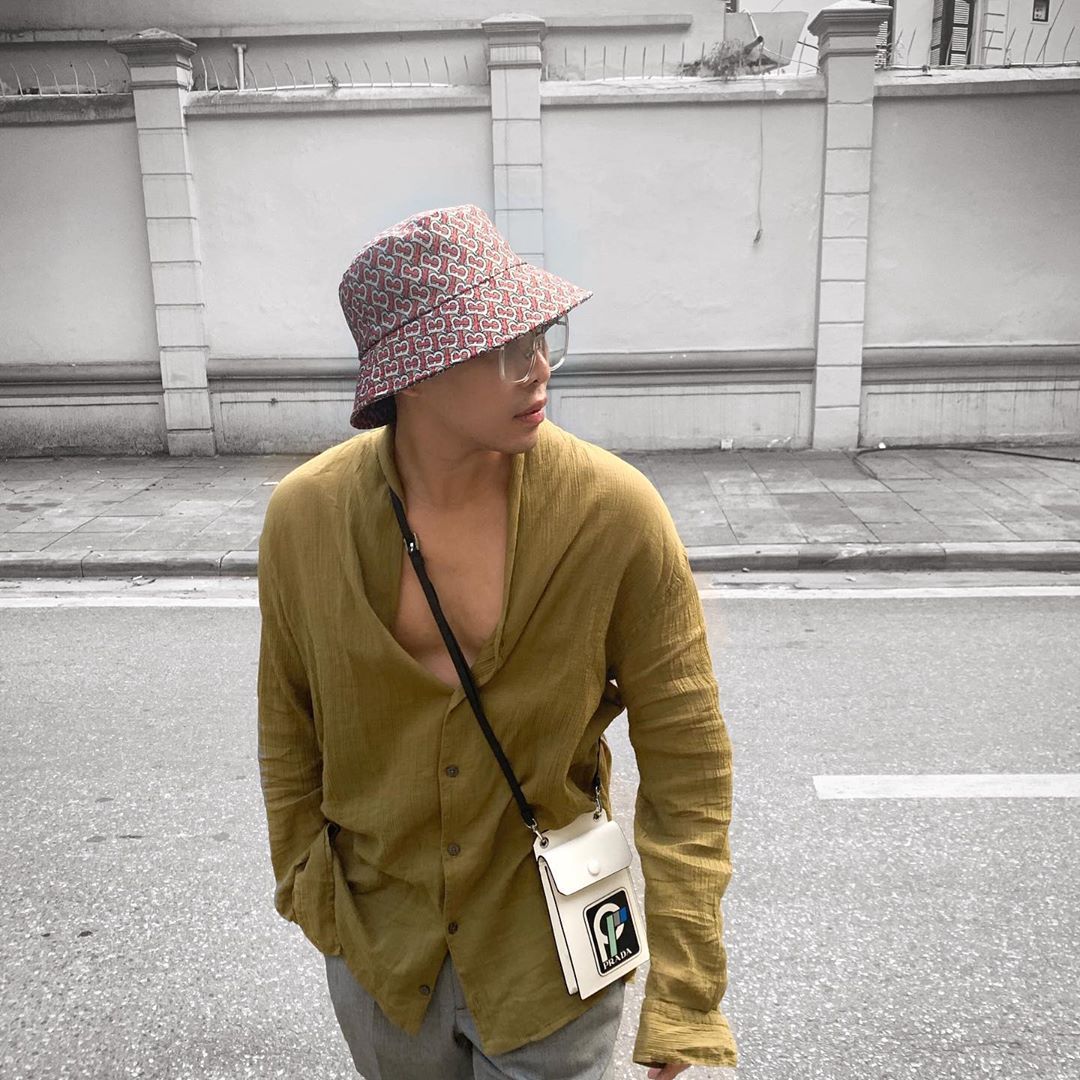 Gam màu neutral vẫn chưa hạ nhiệt, và Hoàng Ku đã tích cực bắt trend khi xuống phố cùng chiếc áo sơ-mi và mũ này.