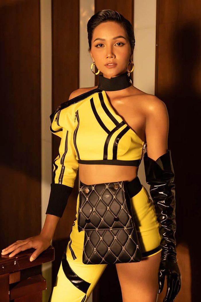 Mới hôm trước vừa “hóa siêu nhân” với cây đồ vàng chóe lóe, hôm nay H'Hen Niê lại quyết chiếm hết spotlight cùng bộ cánh có tông màu rực rỡ này, từ cả quần áo đến phụ kiện.