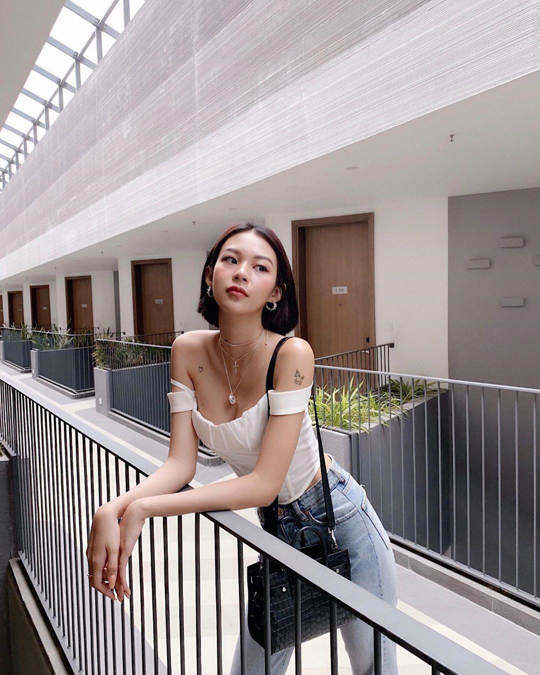 Xu hướng áo trễ vai từ năm ngoái đến nay vẫn chưa hết “hot”. Nhìn vào Phí Phương Anh mà xem, cô nàng trông ngọt ngào, trẻ trung biết bao với bộ cánh này.