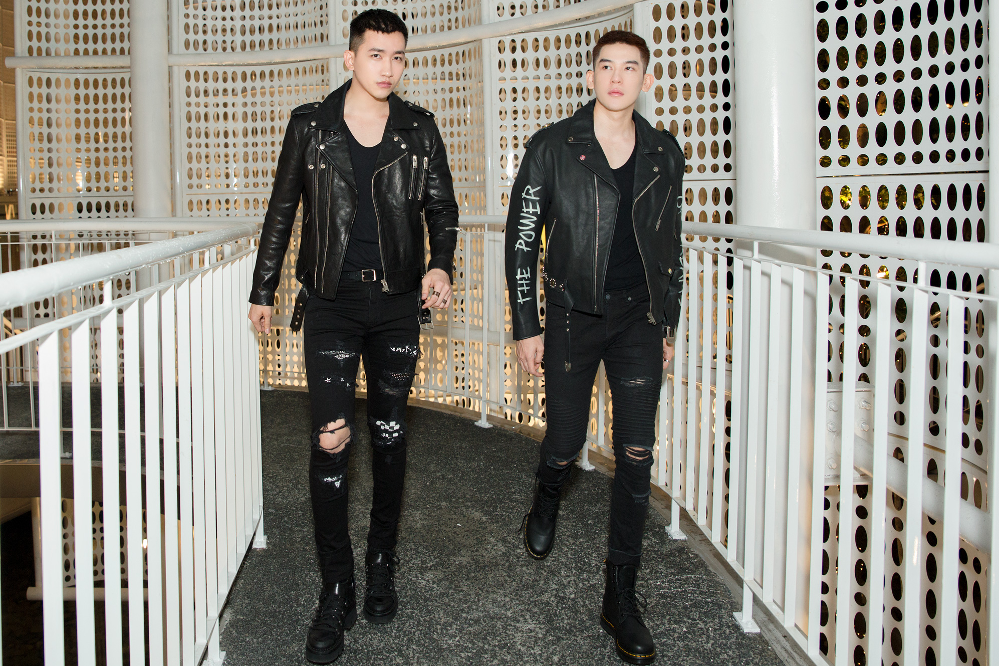 Ở showcase này cũng vậy, Võ Cảnh lựa chọn chiếc áo khoác của thương hiệu Yves Saint Laurent và giày Dsquared2. Trong khi đó, Minh Trung ấn tượng không kém với combo áo khoác - giày từ nhà mốt Balenciaga.
