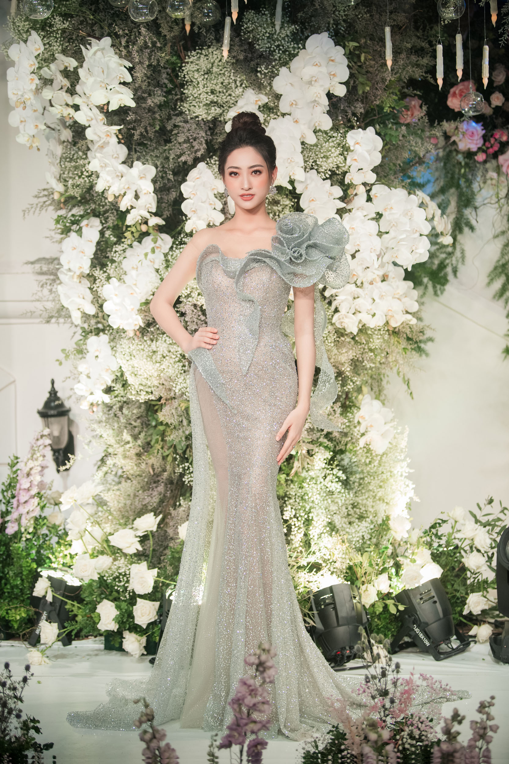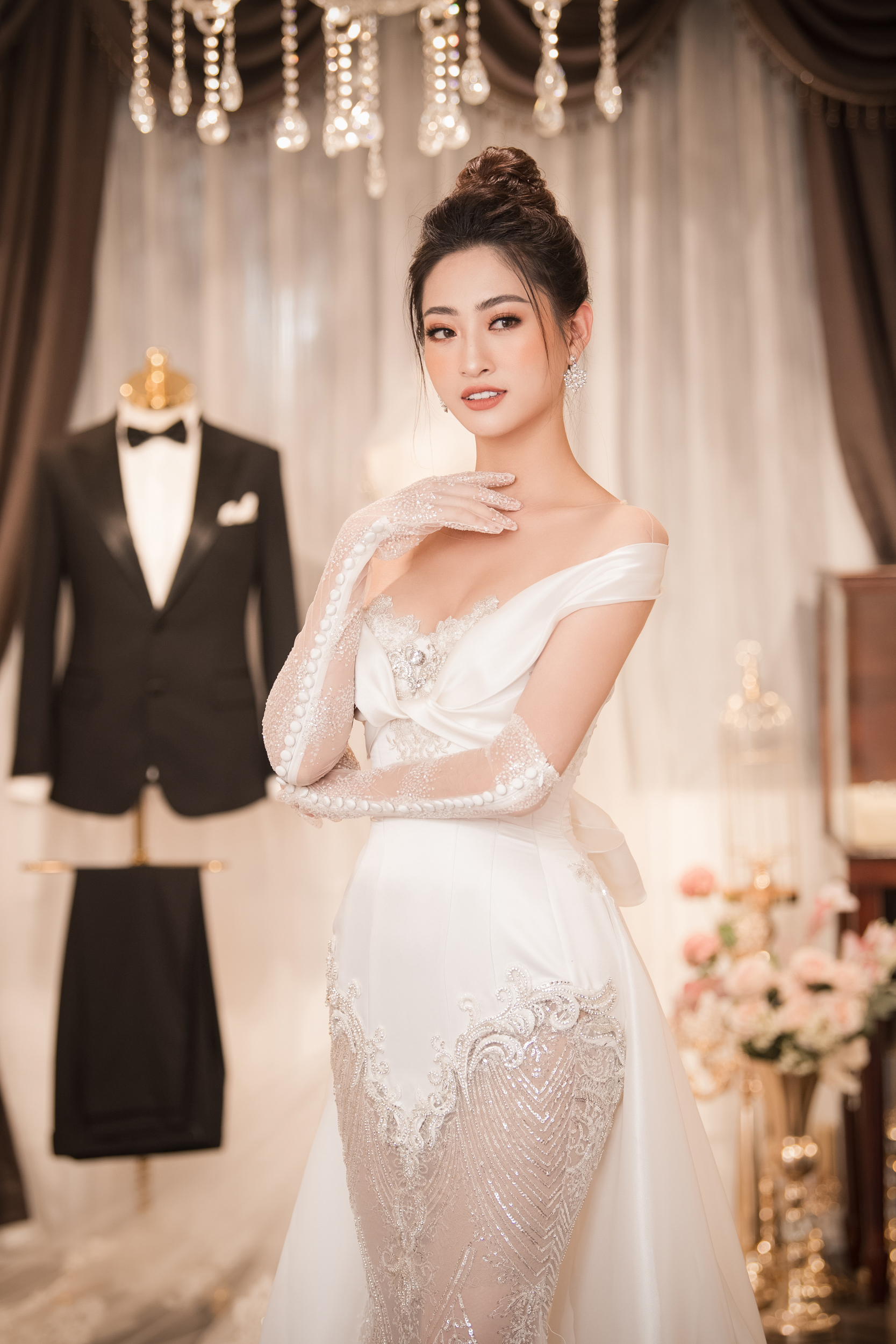 Hoa hậu Lương Thùy Linh nhanh chóng thu hút sự chú ý khi khoe được bờ vai thon thả, quyến rũ.