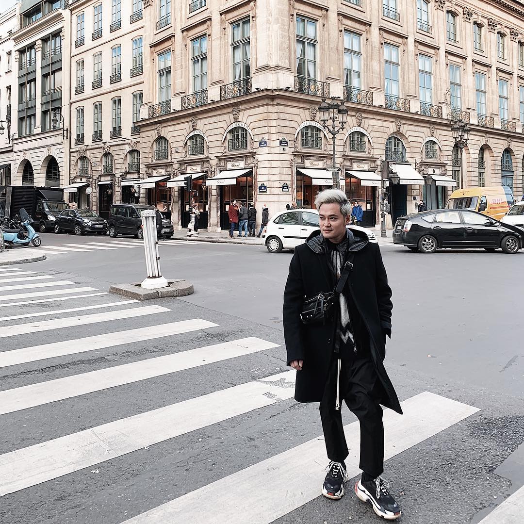 Quang Vinh cũng là một trong những nghệ sĩ nam sử dụng màu tóc để tạo điểm nhấn. Anh chàng chọn cho mình cả cây đen phom rộng cực kỳ ấn tượng.