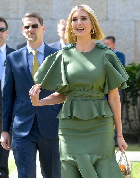 Ivanka quyết định lựa chọn một chiếc váy của nhà thiết kế địa phương cho sự kiện quan trọng. Chiếc váy màu xanh rêu được thiết kế vô cùng trang nhã của hãng Johanna Ortiz có giá $1,650 (khoảng 38,294,025 VNĐ).