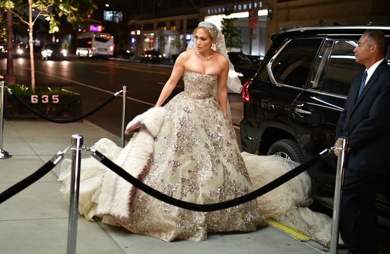 Nếu bạn nghĩ JLo diện một chiếc váy lộng lẫy của hãng Zuhair Murad Couture để làm đám cưới với Alex Rodriguez thì bạn đã nhầm. Thực ra JLo chỉ ăn vận cầu kì như vậy vì vai diễn trong phim mới mà thôi.