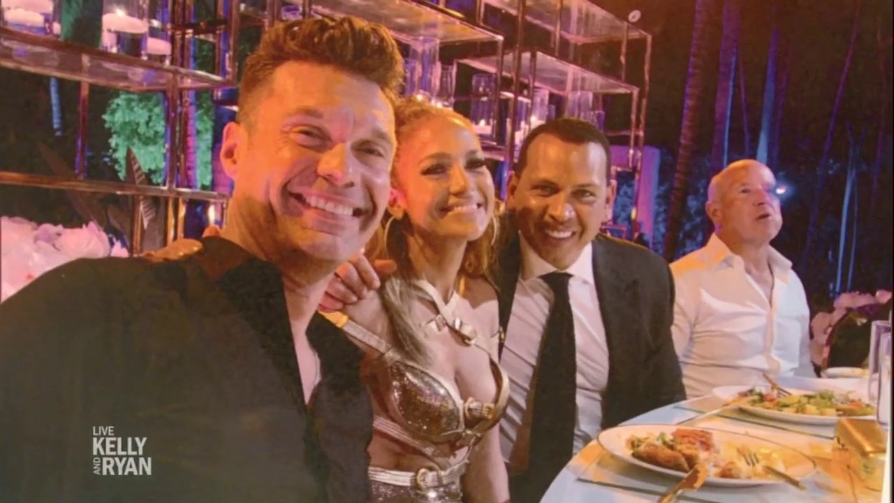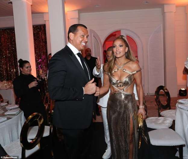 J.Lo ngồi cạnh hôn phu Alex Rodriguez kém 6 tuổi nhưng không hề kém cạnh. Cô vẫn giữ nguyên cơ bụng rắn chắc và vòng một đẫy đà như thuở 20. Trước ngày sinh nhật, vị hôn phu đã tặng cô một chiếc mui trần Porsche màu đỏ trị giá 140.000 USD.