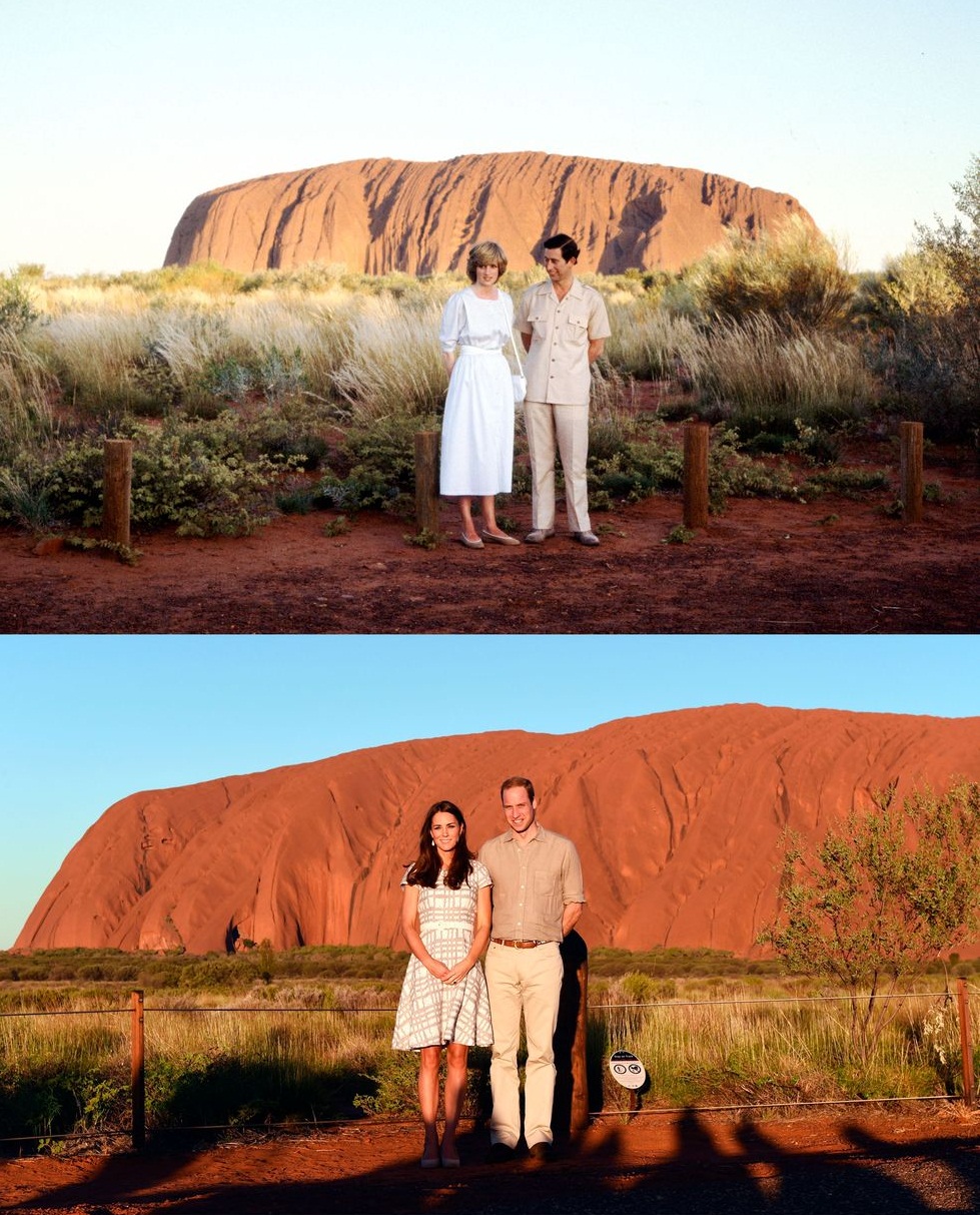 11. Diana và Charles đến Ayers Rock - Úc năm 1983, Kate và William cũng có mặt tại Ayers Rock nhưng vào năm 2014.