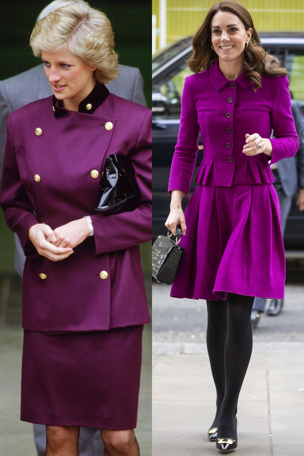 1. Diana diện váy tím tại phố Albans năm 1988 còn Kate ở nhà hát The Royal Opera House năm 2019.