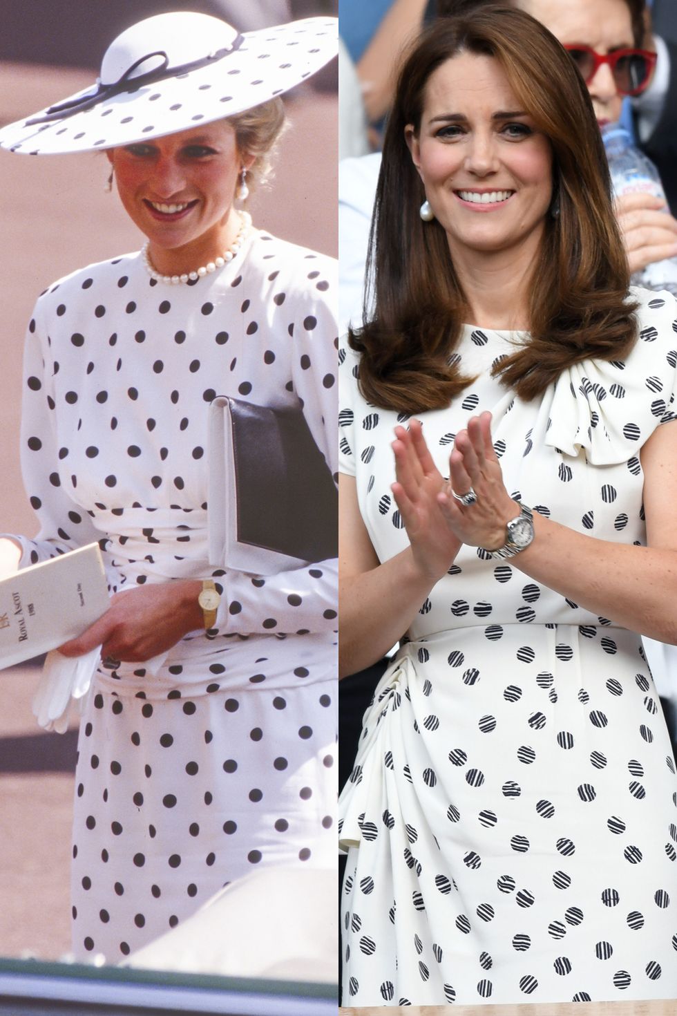 Là vợ của Quốc vương tương lai nước Anh, Nữ công tước xứ Cambridge thường xuyên bị đặt lên bàn cân so sánh với người mẹ quá cố của chồng mình, Diana, Công nương xứ Wales. Kate Middleton luôn tận dụng sự nhạy bén với thời trang khi tham gia các sự kiện trọng đại. Đặc biệt, cô thường xuyên ăn mặc giống hệt bà Diana để bày tỏ lòng kính trọng đối với mẹ chồng.