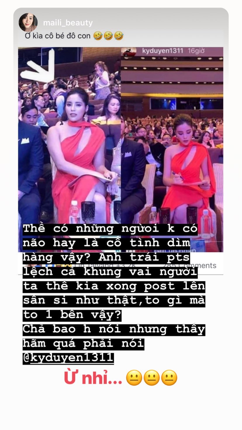 Không những thế, khi một người bạn chia sẻ lại bức ảnh với phản ứng khá gay gắt “Thề là có người không có não hay cố tình dìm hàng vậy? Ảnh trái photoshop lệch cả khung vai người ta thế kia xong post lên sân si như thật, to gì mà to một bên vậy?” và Kỳ Duyên cũng đã trả lời lại rằng “ừ nhỉ”.