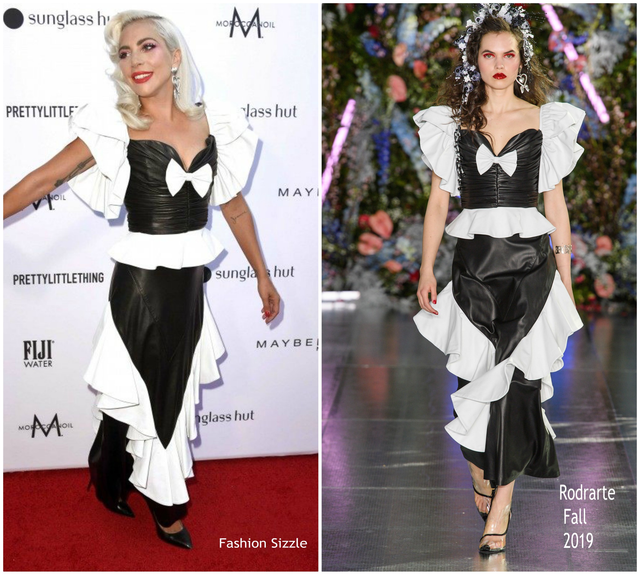 Cô diện chiếc váy đen trắng xếp nếp bung xòe từ bộ sưu tập Thu Đông 2019 của Rodarte, kết hợp với đôi bông tai bạc hình trái tim để hoàn chỉnh phong cách lấy cảm hứng retro. Tất nhiên nhà tạo mẫu Aspiras đã cẩn thận uốn tóc nữ ca sỹ thành từng lọn thanh lịch như các quý cô thập niên 1940.
