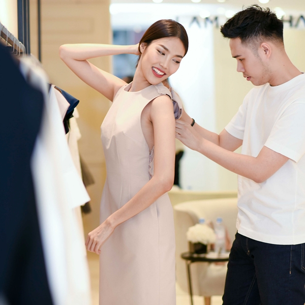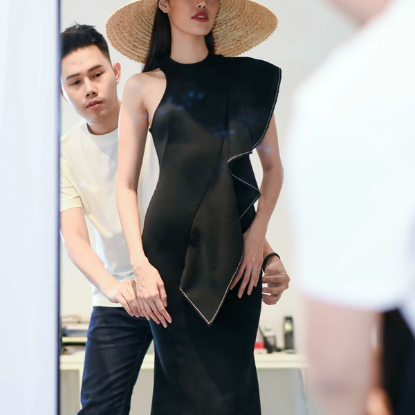Với sự giúp đỡ của nhà thiết kế từng lọt danh sách “30 Under 30” của Forbes Việt Nam, siêu mẫu nhanh chóng chọn được bộ cánh vừa ý để sải bước trên sàn catwalk.
