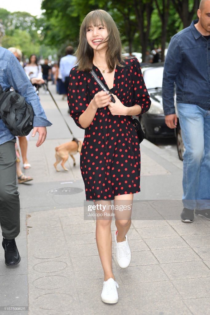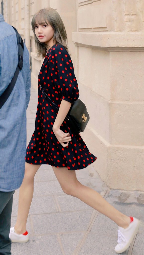 Diện bộ váy chấm bi màu đỏ và giày thể thao màu trắng, một lần nữa Lisa lại gây ấn tượng với phong cách thời trang giản dị nhưng vô cùng nữ tính và bắt mắt của mình