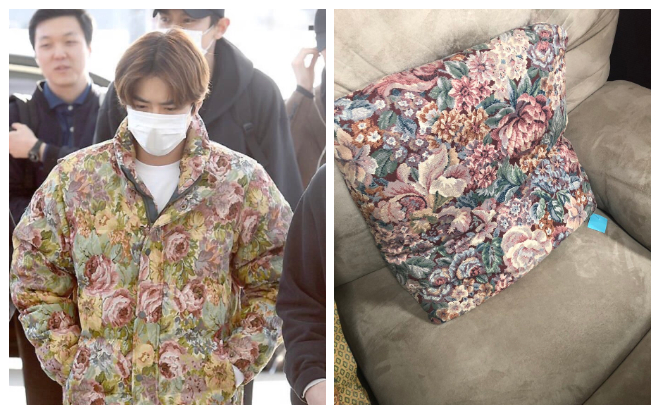 Sự 'trùng hợp' bất ngờ giữa chiếc áo khoác của Suho và chiếc gối ôm trên ghế sofa được các fan đăng tải