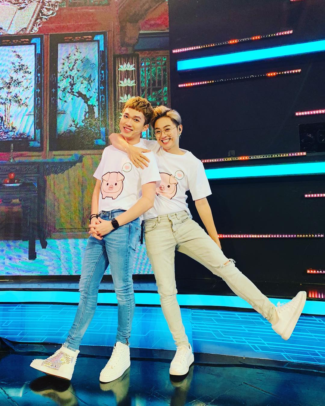Thanh Duy, Min xù - Quốc Minh khiến các fan cực kỳ thích thú khi diện bộ đôi áo phông in hình chú lợn - linh vật của năm 2019.