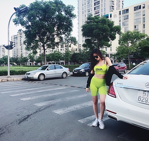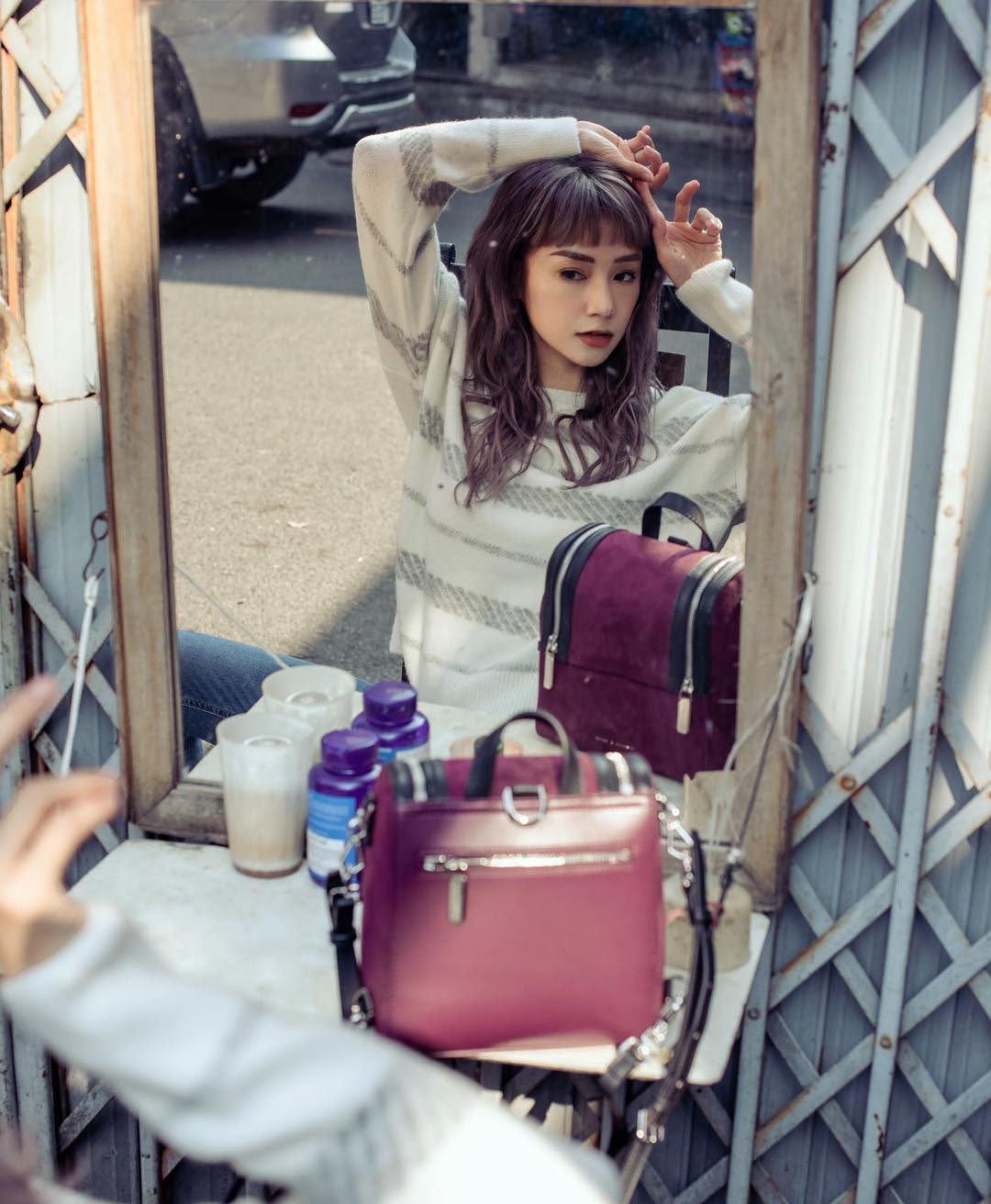 Bức ảnh của hot girl Salim tuy được chụp tại một tiệm cắt tóc vỉa hè nhưng lại được “nâng cấp”, trông thời thượng hơn hẳn nhờ loạt phụ kiện túi xách kèm theo.