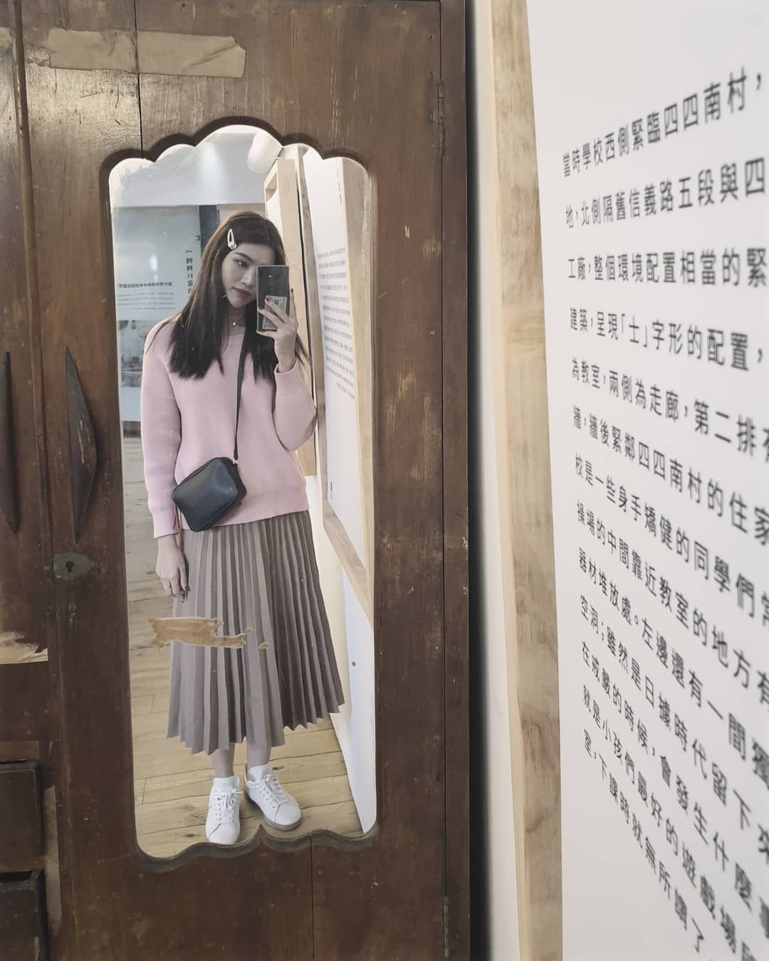 Người mẫu Quỳnh Châu lại trông như một viên kẹo ngọt ngào cùng áo len và chân váy dập pli tông màu pastel.