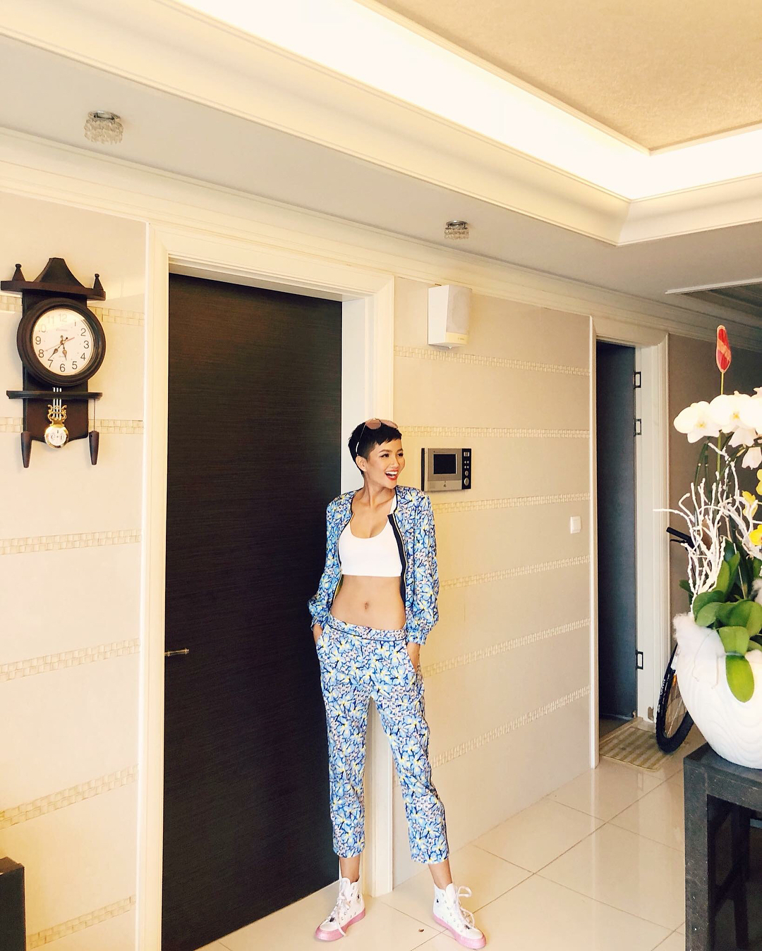 Hoa hậu cũng rất biết khoe khéo đôi chân dài của mình qua từng trang phục thể thao.