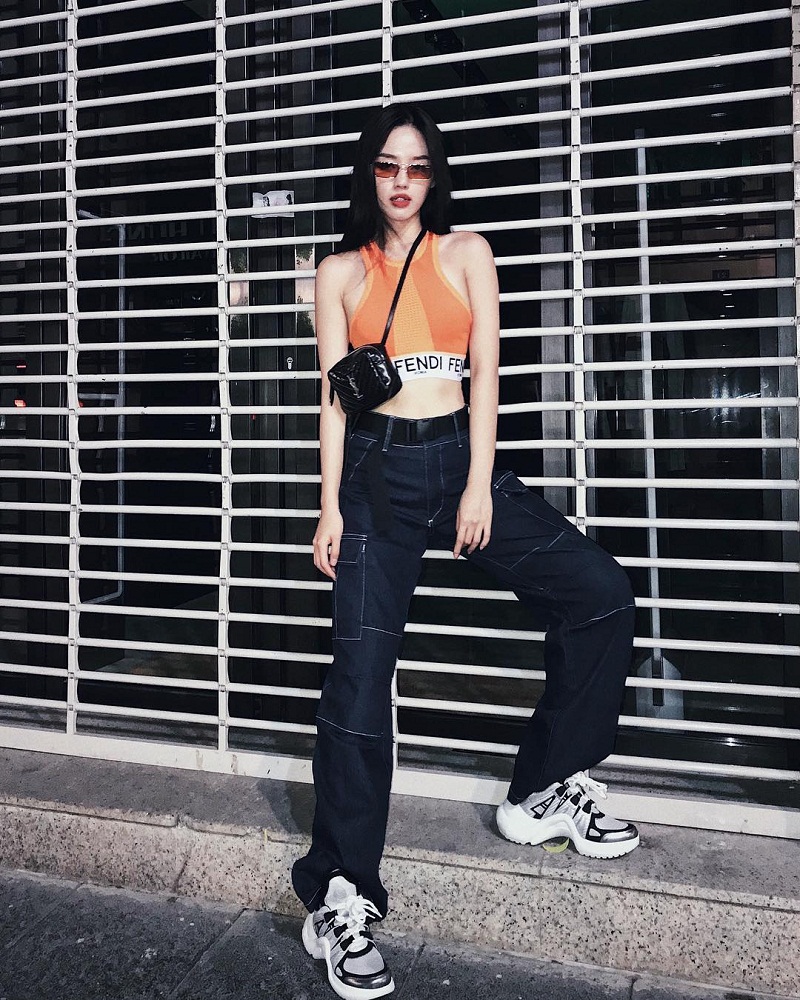 H'Hen Niê cũng không đứng ngoài xu hướng belt bag gần đây