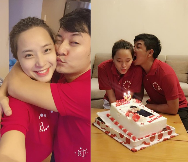 Ca sĩ Hải Băng ngập tràn trong hạnh phúc khi được ông xã Thành Đạt tổ chức sinh nhật đơn giản và ấm cúng tại nhà. Bữa tiệc chỉ có 2 vợ chồng, tuy nhiên vẫn ấm nồng tình cảm khi cả hai mặc áo đôi màu đỏ trẻ trung, giản dị.