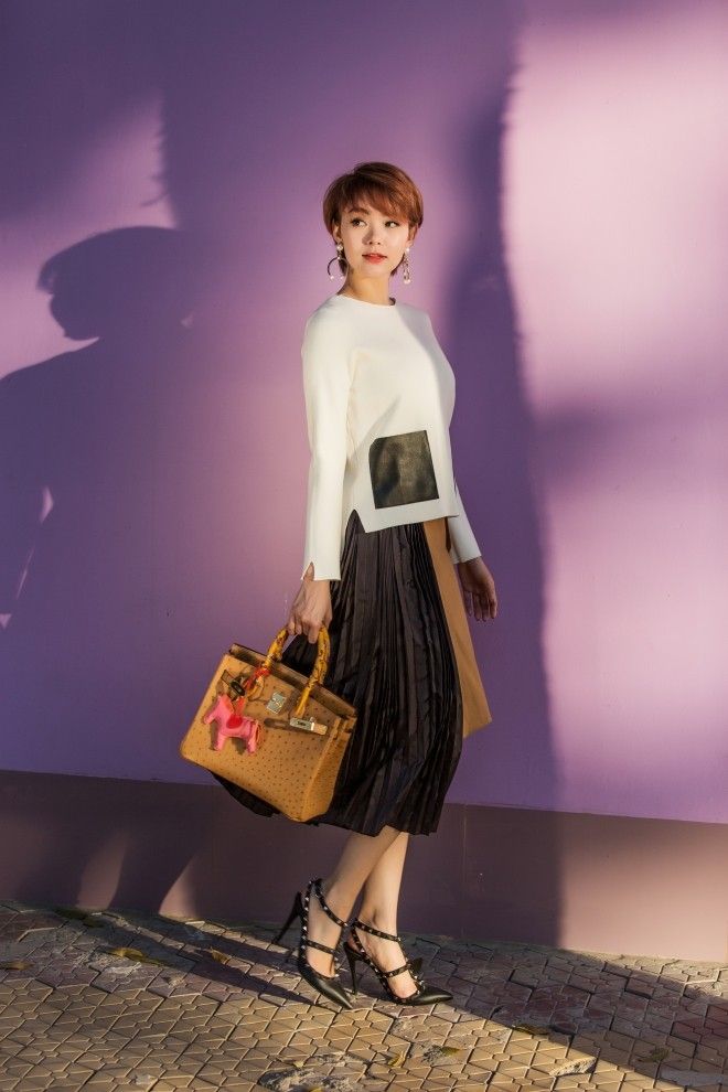 Cô nàng dùng túi Hermes kết hợp cùng giày Valentino cực sang chảnh.