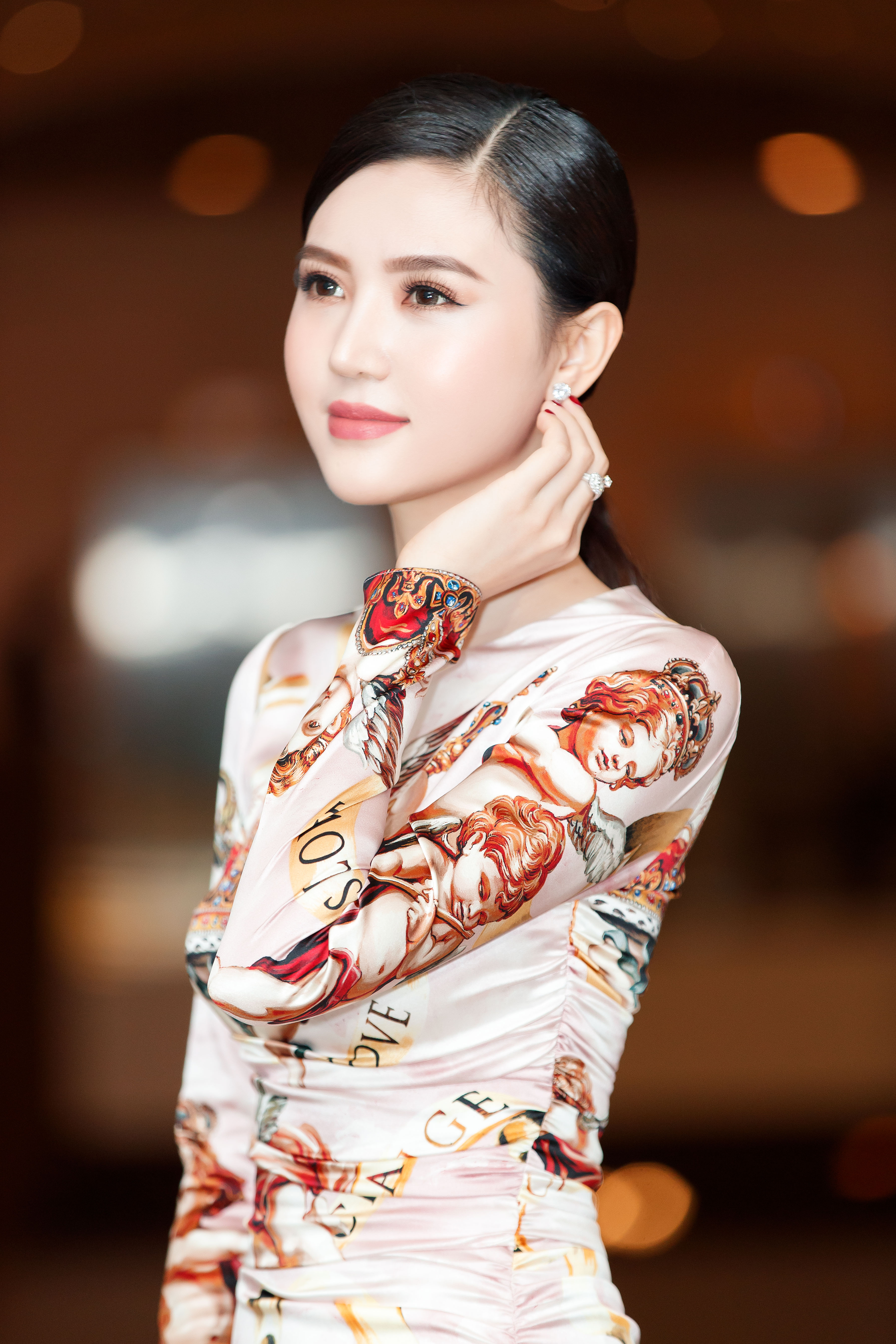 Với bộ cánh họa tiết, cô chọn kiểu tóc buộc đơn giản để làm tôn lên gương mặt trái xoan thanh tú, nhẹ nhàng.