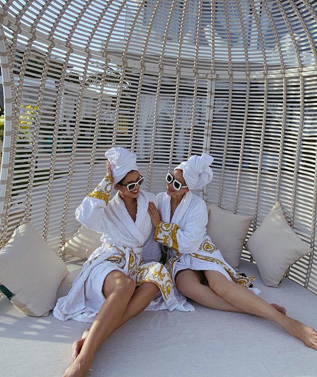 Diện áo choàng tắm cũng phải có đôi có cặp, và cùng từ những nhà mốt đắt giá mới vừa ý. Tình cảm của hai mẹ con hàng hiệu thật khiến khán giả xuýt soa ghen tỵ.
