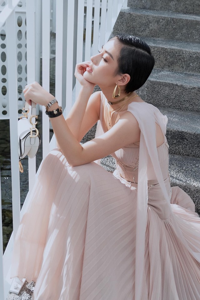 Ghi điểm tuyệt đối và dẫn đầu bảng sao đẹp chính là “Nữ hoàng lookbook” - Khánh Linh The Face. Với mái tóc ngắn chải ép sát tương phản chiếc váy hồng xinh xắn, đính kết tỉ mỉ của NTK Chung Thanh Phong cùng loạt phụ kiện đắt giá, cô nàng tạo nên một vẻ ngoài cực kỳ hài hòa, từng đường nét ăn nhập hoàn hảo giữa những điều tưởng chừng tương phản. đối chọi nhau “chan chát”.