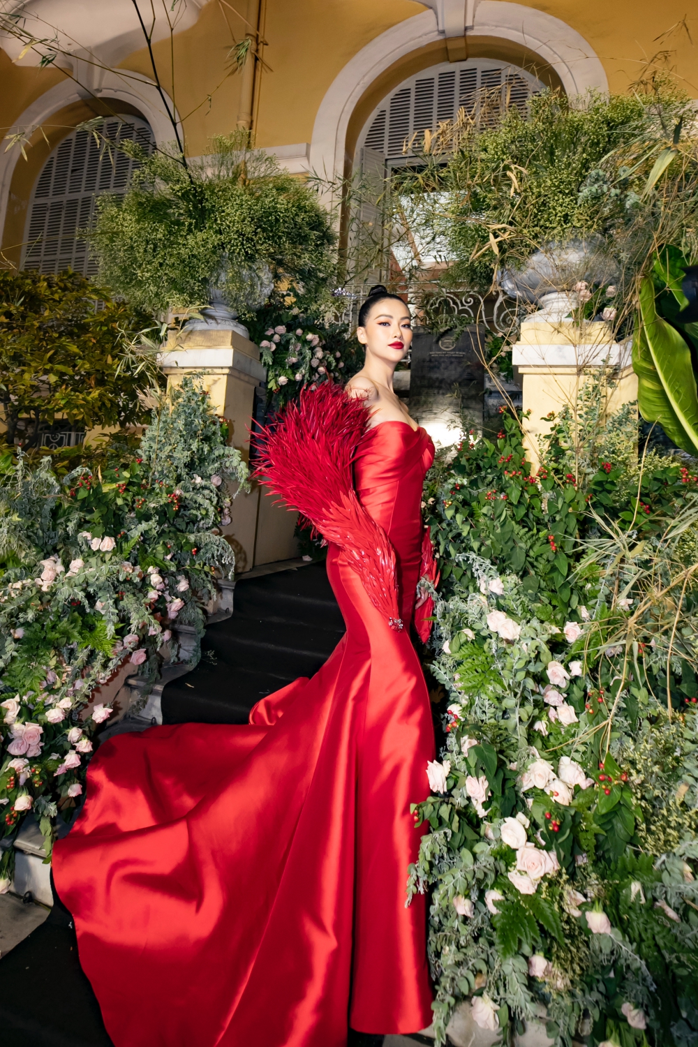 Phương Khánh gây ấn tượng khi hóa thân thành 'phượng hoàng lửa' trên thảm đỏ.
