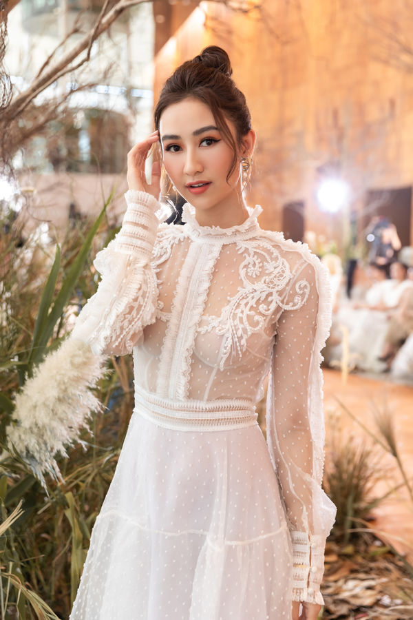 Á hậu Hà Thu đẹp “nghiêng nước nghiêng thành” khi thả dáng trong chiếc váy xuyên thấu, nữ tính.