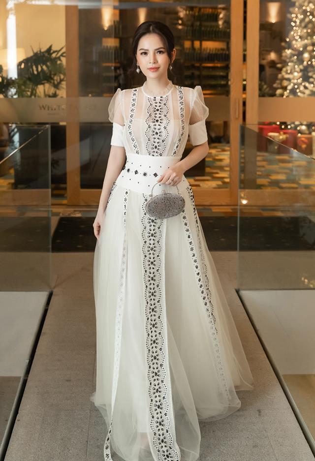 Ngoài ra, những chiếc váy dạ hội với chất liệu ren, voan xuyên thấu, tuy mong manh tựa sương khói nhưng cũng tô điểm đậm nét nhẹ nhàng, tinh khôi cũng là kiểu đồ cô nàng thường xuyên sử dụng.