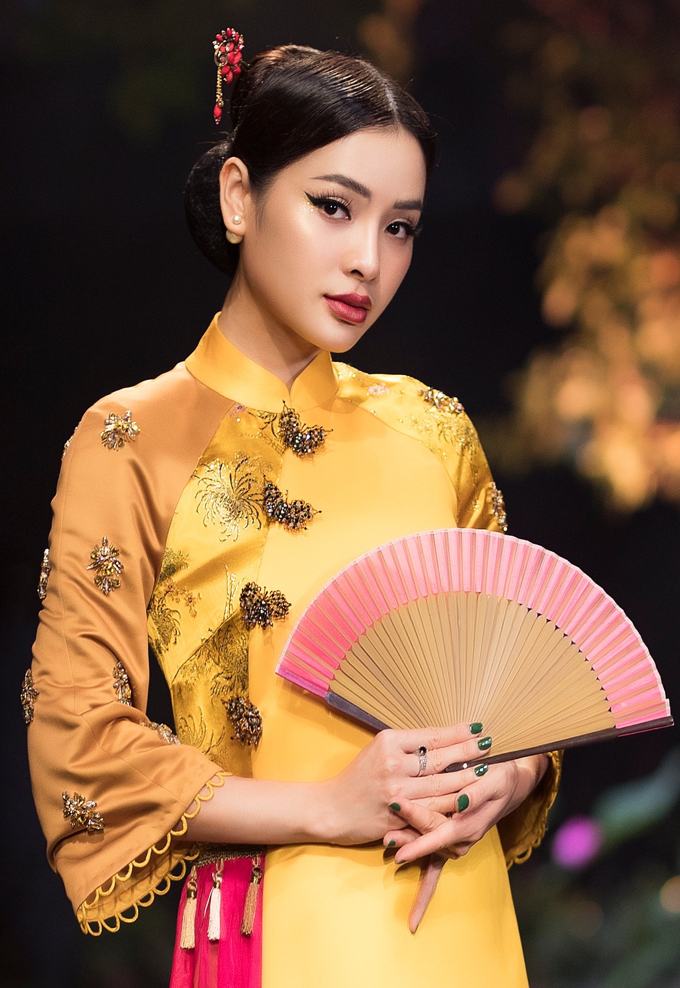 Mới đây, khi xuất hiện tại một chương trình, Phương Trinh Jolie gây bất ngờ khi thả dáng trong bộ áo dài kết hợp giữa sắc vàng và hồng bắt mắt. Không còn gây bỏng mắt với hình ảnh gợi cảm, Phương Trinh Jolie vẫn nổi bật trên thảm đỏ sự kiện.