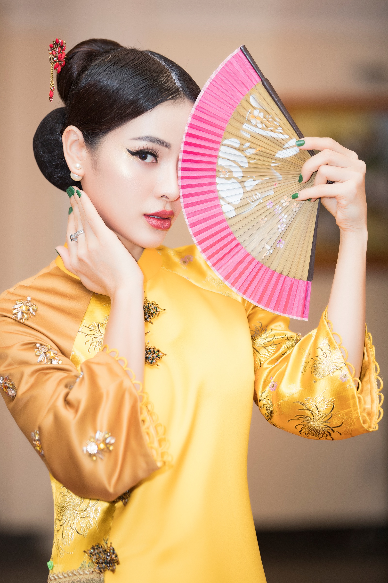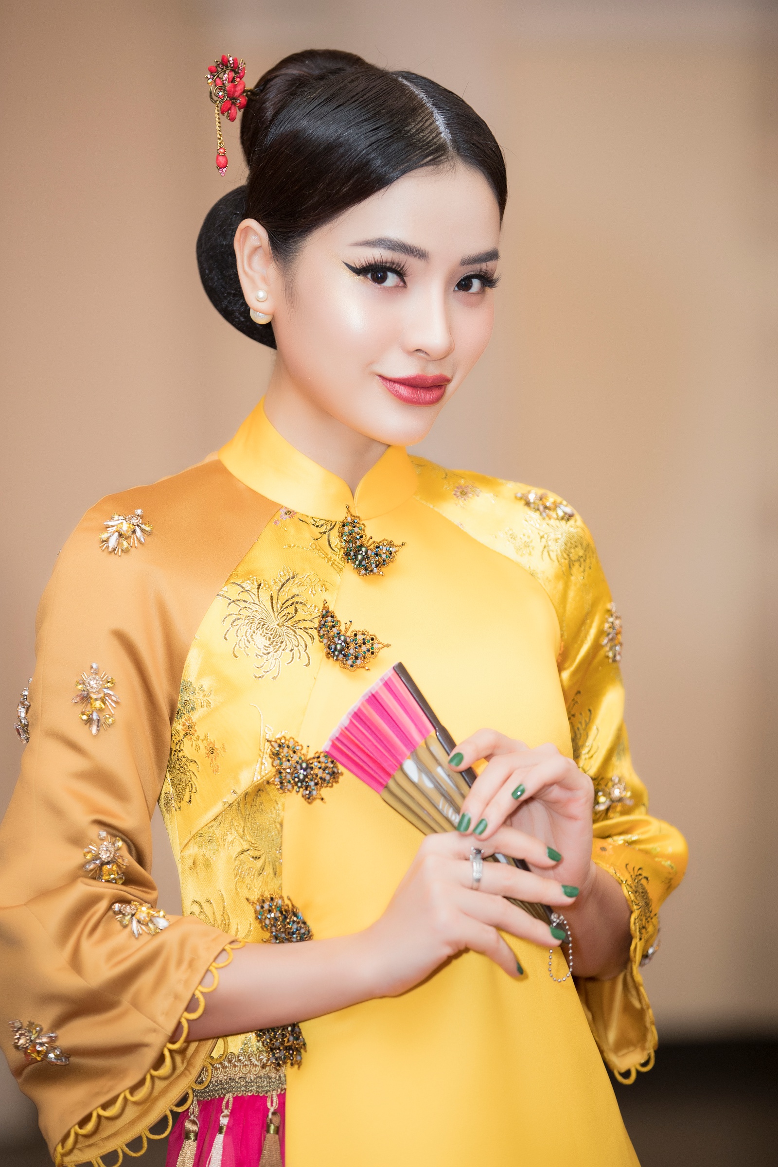 Người đẹp cho biết, dù không thường xuyên diện áo dài nhưng cô luôn cảm thấy tự tin, thoải mái mỗi lần khoác lên người bộ trang phục truyền thống của dân tộc.