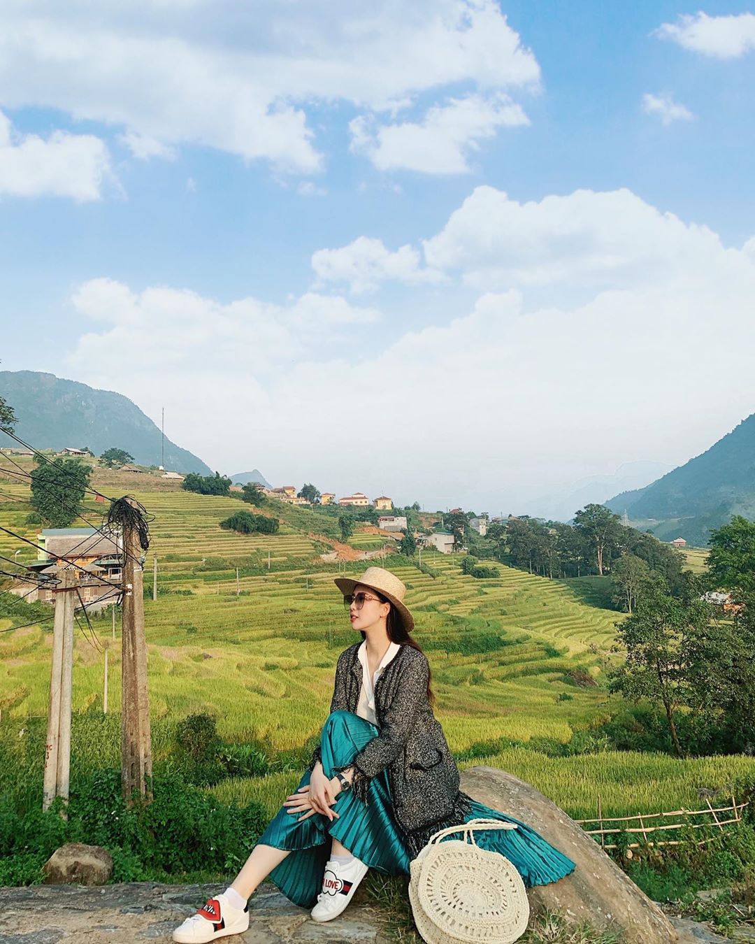 Thả dáng tại vùng cao, siêu mẫu Quỳnh Hoa vẫn không quên chưng diện những item thú vị, đắt giá tô điểm thêm cho set đồ của mình.