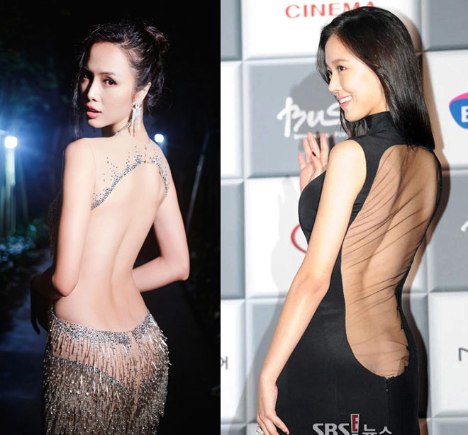 Cùng để hở một phần vòng 3 nhưng bộ cánh của chân dài Việt được nhận xét là sang và tinh tế hơn.